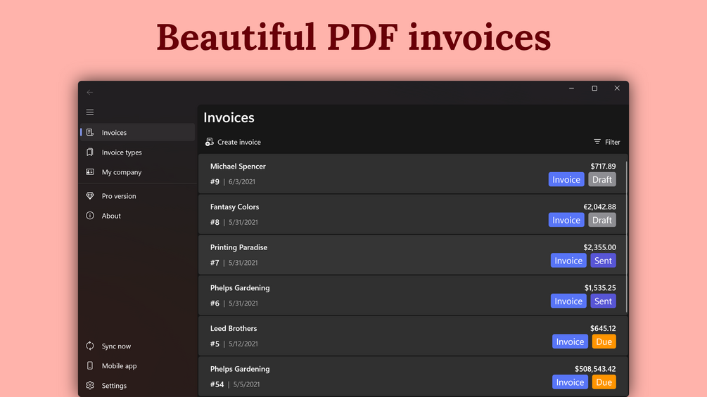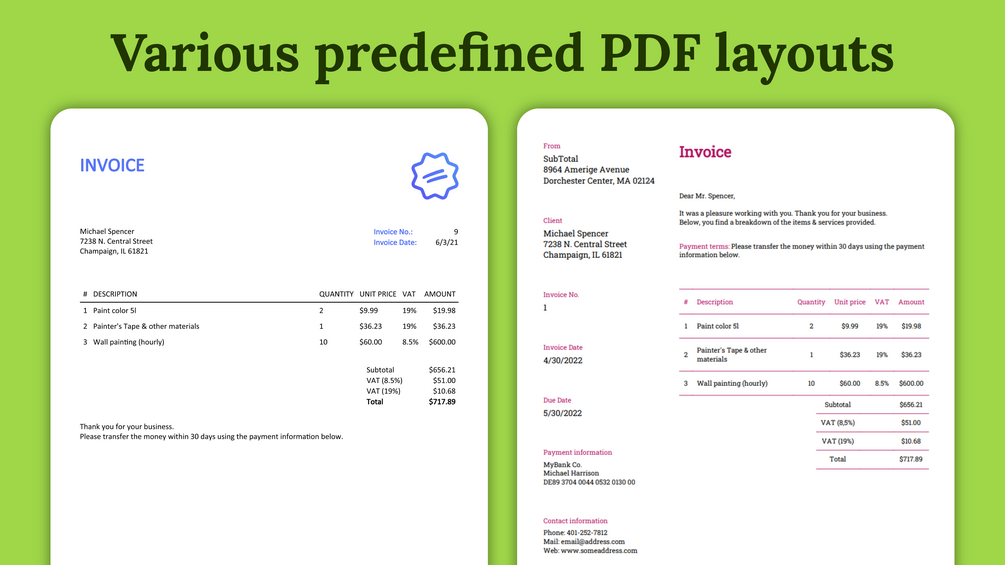 SubTotal is a tool for small business owners to quickly create PDF invoices. From wherever you are, with just a few clicks.